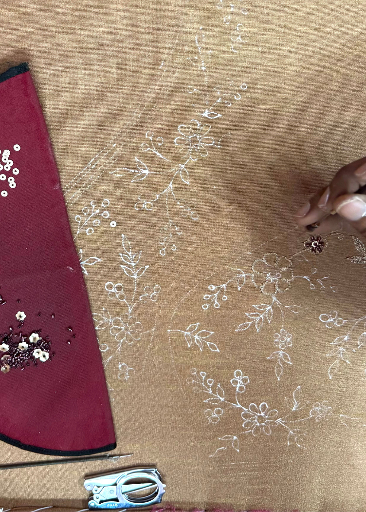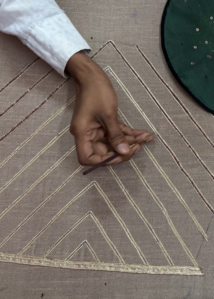 Every Kashmi piece is a tribute to the rich legacy of Indian karigari. We work closely with skilled artisans whose mastery has been passed down through generations. From intricate hand embroidery to delicate detailing, each garment reflects hours of meticulous craftsmanship, care, and an unwavering dedication to tradition. It is this human touch — the soul of our creations — that makes every piece truly one of a kind.